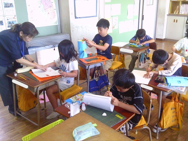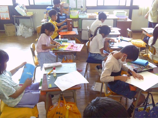 「まどをあけたら」で、カッターナイフを丁寧に扱いながら、切り抜いた場所から見えるものを作っています。