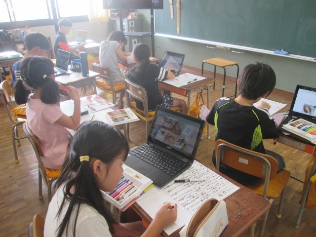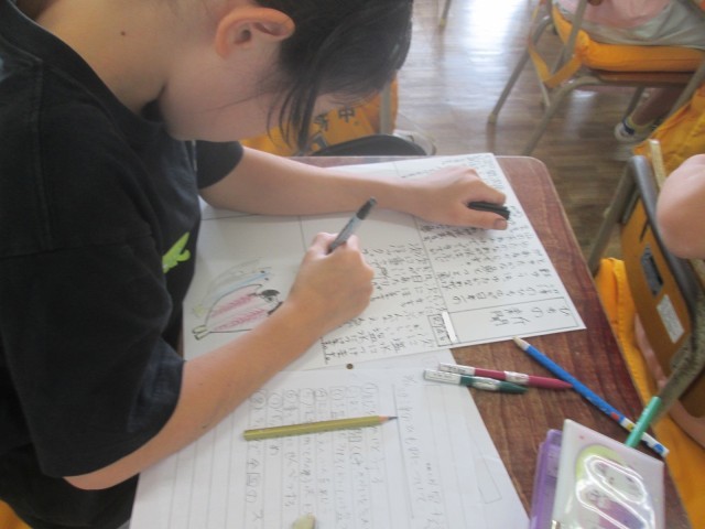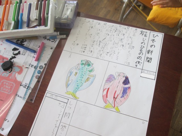 昨日体験した干物づくり、「とってもおいしかった!」という声が子供たちから聞こえてきました。今日は学んだことを思い出しながら、その様子や作り方を新聞形式にまとめています。
