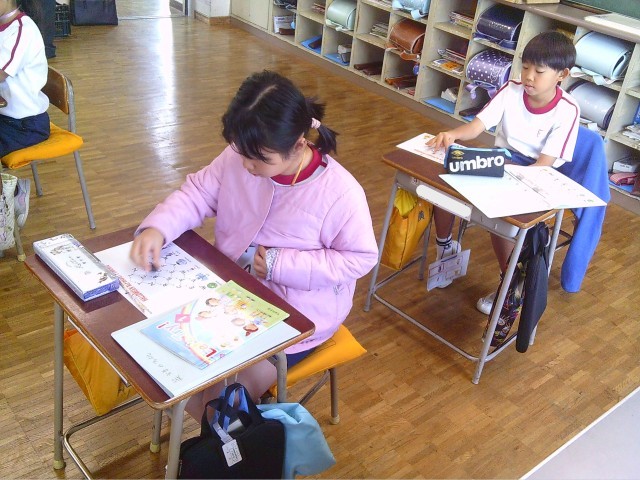 3年生は、先日体験した「ひもの作り」の新聞を仕上げていました。