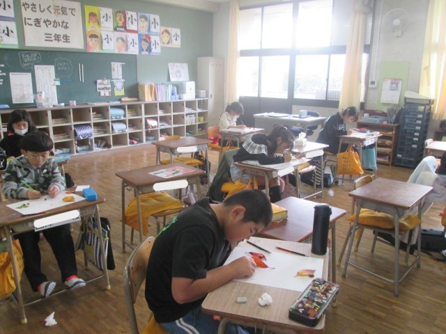が、4年生同様に欠席者が増えたため、寂しい感じが否めない人数での授業となっています。