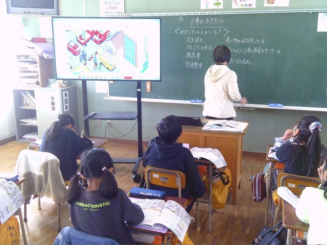 社会を守るしくみについて学んでいます。昨日の避難訓練も踏まえて、消防士の皆さんがどのような仕事をしているのか、各種資料から学び取っています。