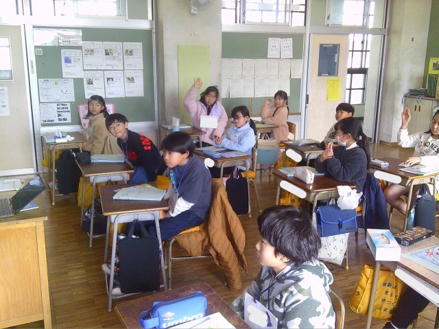画面上に見えた動物について英語で答える授業です。恐る恐る手をあげながらも頑張って取り組んでいます。