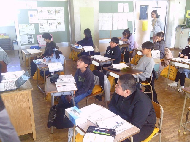 画面上に見えた動物について英語で答える授業です。恐る恐る手をあげながらも頑張って取り組んでいます。