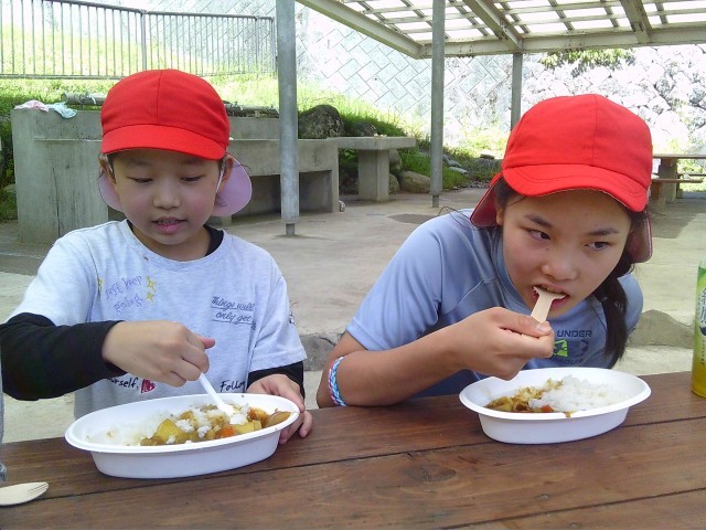 カレーライスをおなかいっぱい食べた後は広場で遊び、退所式に臨みました。有意義な2日間でした!