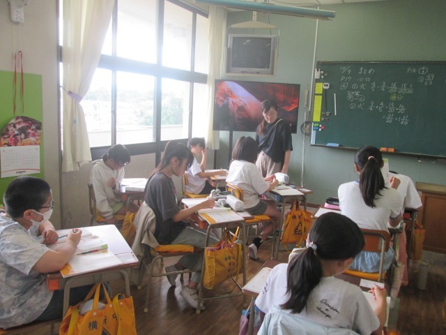 日本の工業生産について映像資料で学んでいるところです。一日に生産されるネジの数の多さに驚いていました。