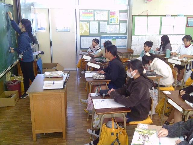 5年生の国語は教頭先生が担当です。枕草子に関する学習を通じて、昔の人が考えたことや今の時代にも通じる大切なことを学んでいきます。