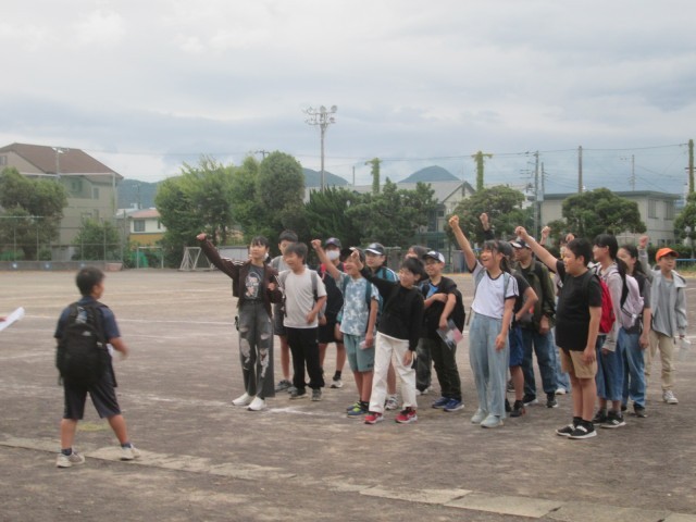 集合時刻前に全員が揃ったため、予定より早く出発式を行い、目標等を確認しました。