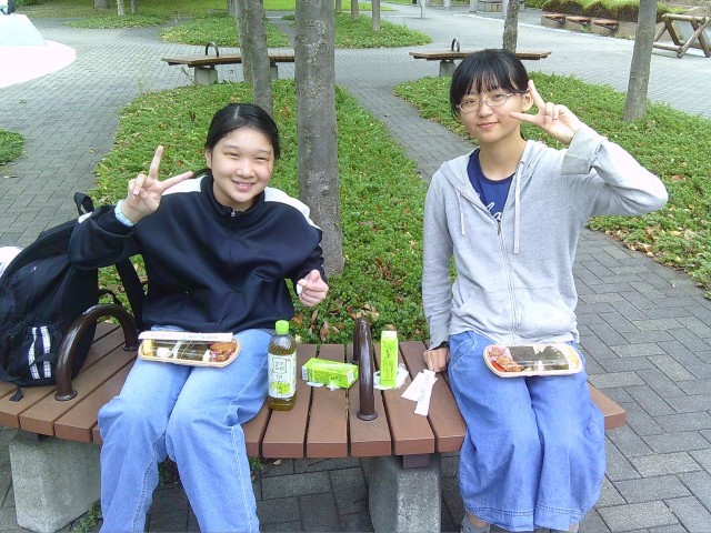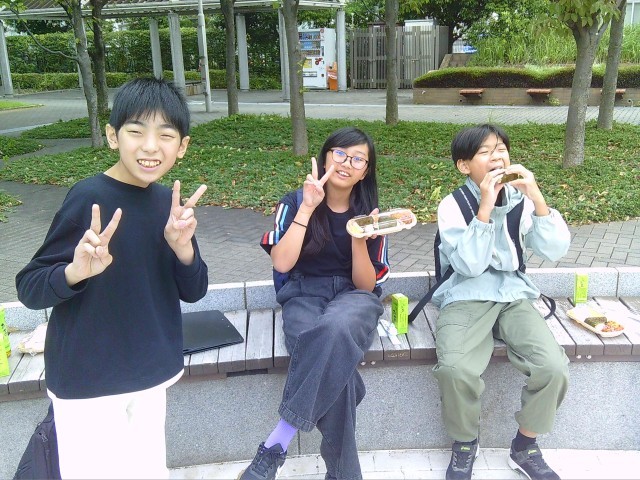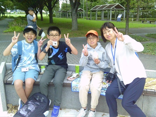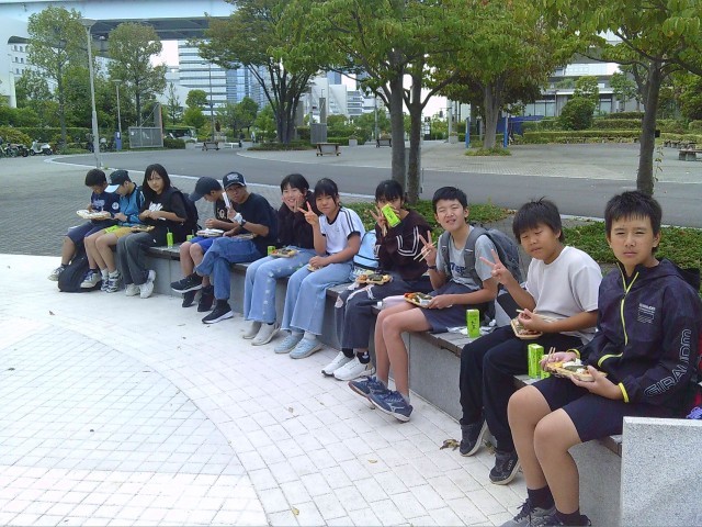 防災体験の前に、同施設そばの公園で昼食を取りました。みんな元気に食べました!