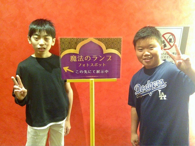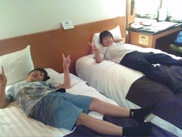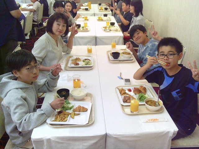 「アラジン」鑑賞後、子どもたちの行動がキビキビしていたので予定より若干早くホテルに到着です。早くもくつろぎモードの子もいます。このあとはバイキング夕食です!