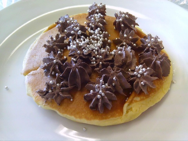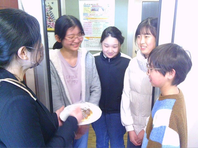 実習で作ったクレープやパンケーキを校長と教頭にお裾分けしてくれました!