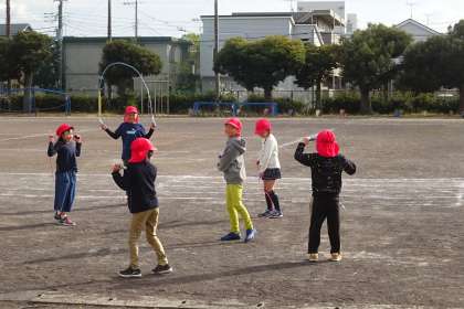 子どもたちにはなわとびカードが渡されたました。体育以外の時間でも練習に励むよう働きかけていきます。昼休みには低学年中心に練習する子たちが出てきました。2年生は、長縄を楽しんでいました。寒さに負けずがんばりましょう。 -