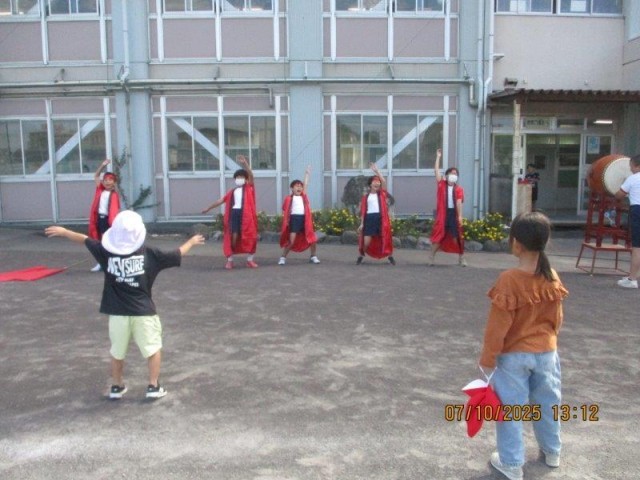 その周りで低学年の子どもたちがかっこいいと動きをまねているのもかわいいです。