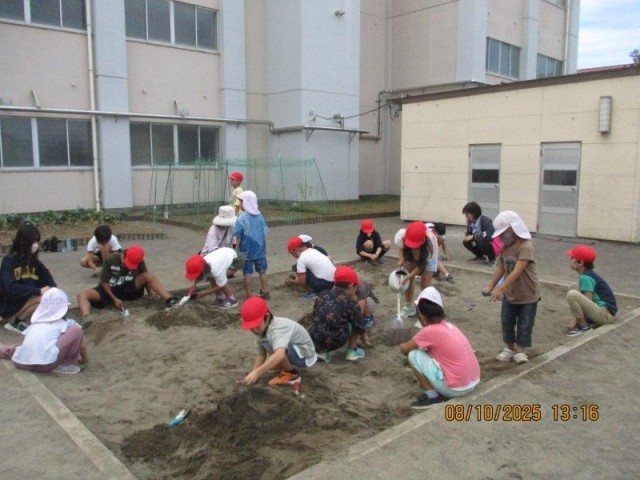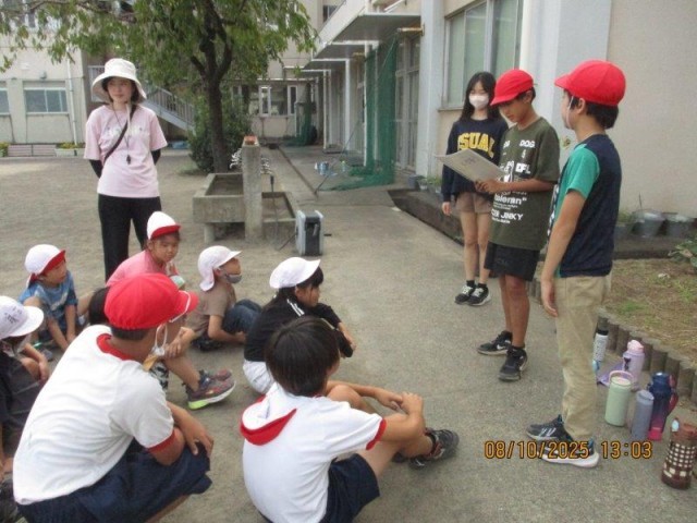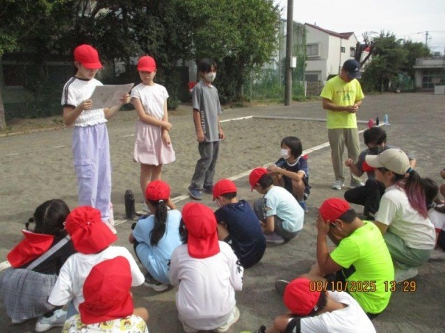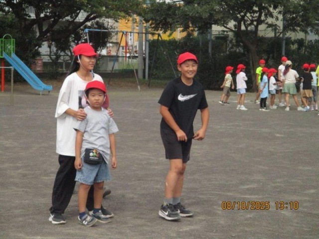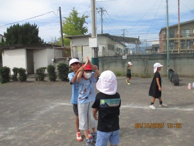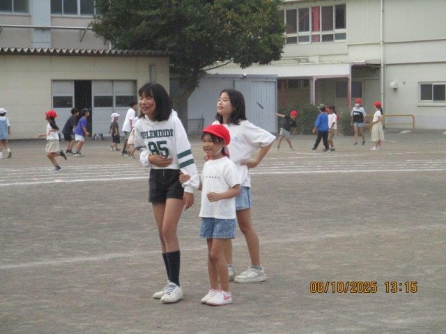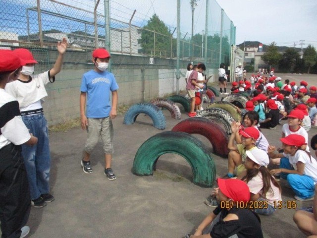 6年生の主催のふれあい活動が運動場で行なわれました。けいどろや砂場遊び、バナナおになどいろいろな遊びをしました。
