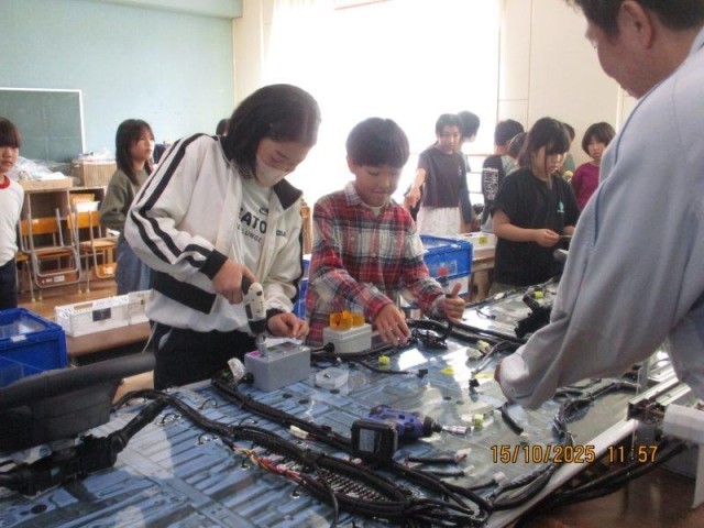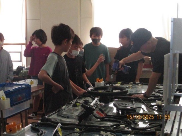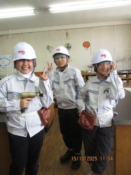 5年生は、トヨタの方々をお呼びして、トヨタスクールを開催しました。実際の現場でも来ている服やヘルメットなどをつけたり、自動車の組み立てを体験したりすることができました。