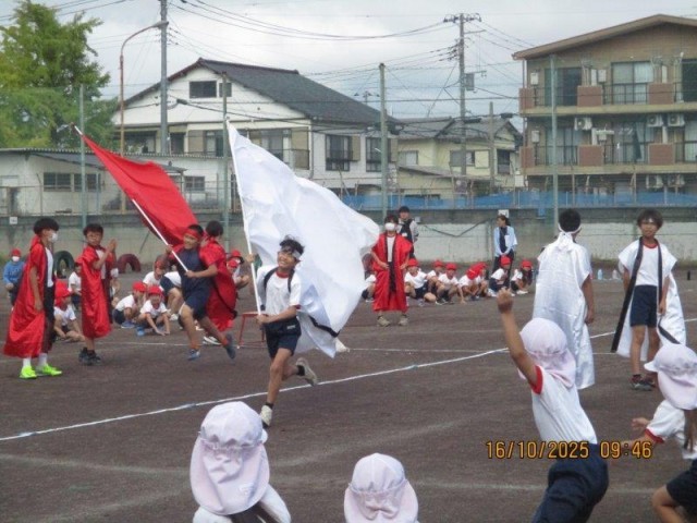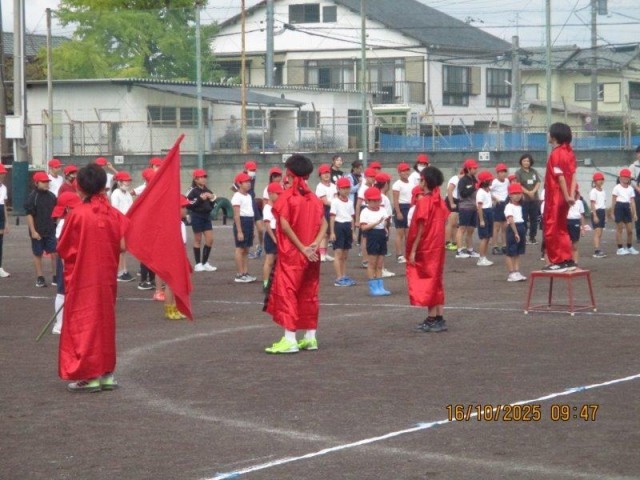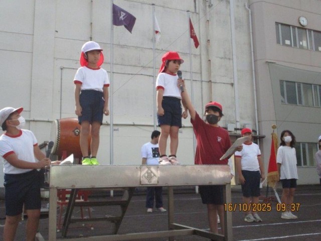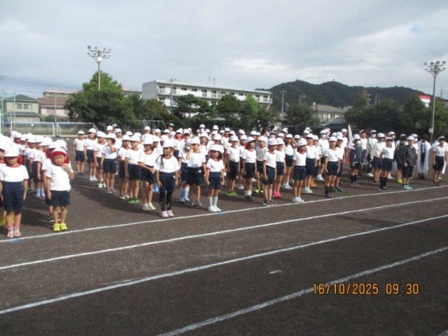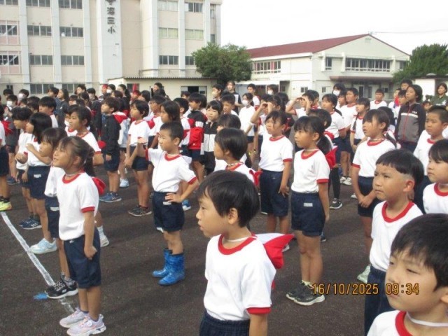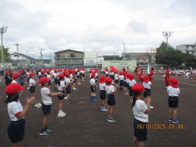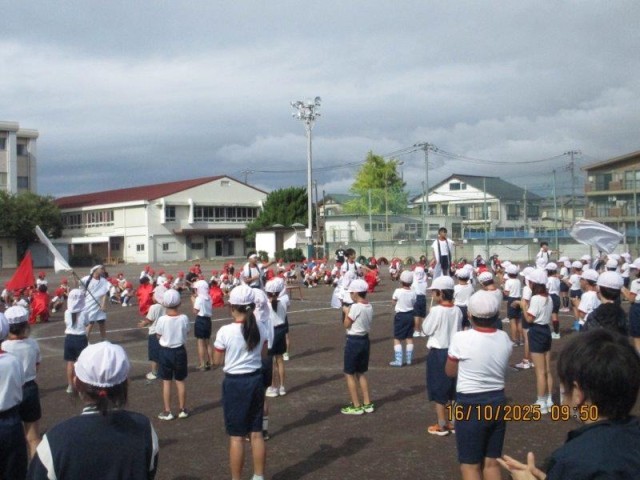 今日は、運動会の全校練習でした。入場、開会式や応援練習などを行ないました。