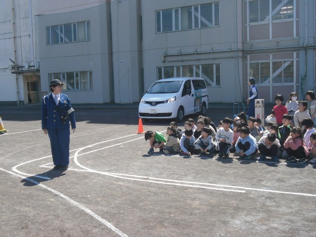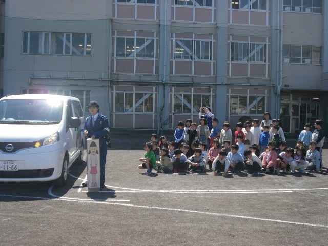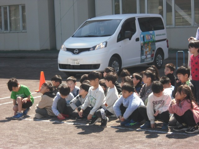 道路を歩くとき、横断歩道を渡るとき、どんなことに気を付けたらよいのか、1,2年生が交通安全指導員の方に教えていただきました。