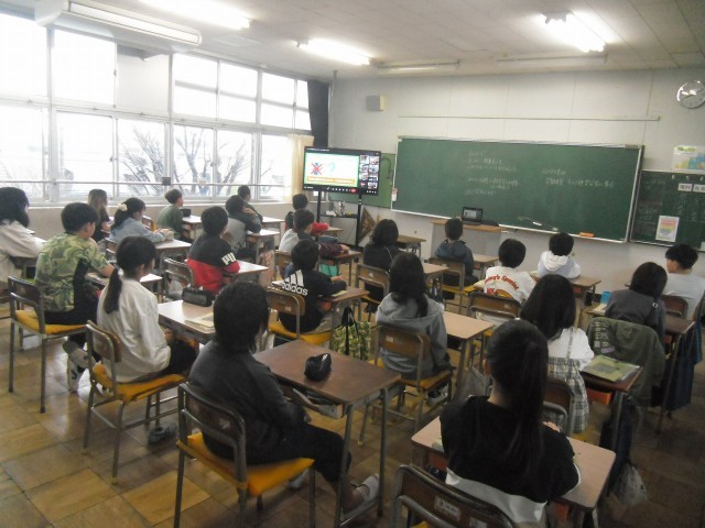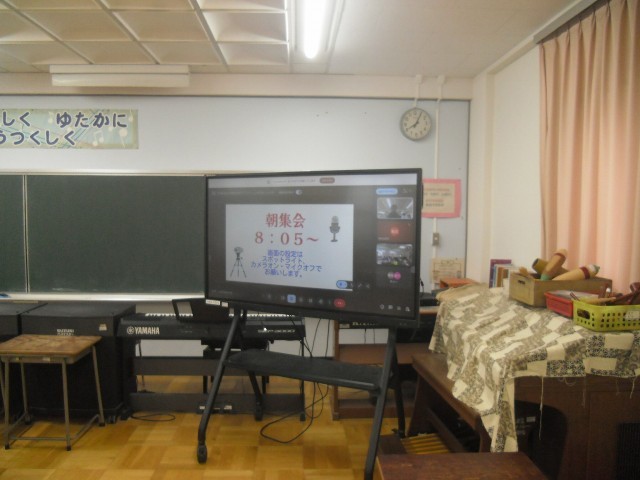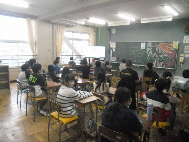 8年度最初の朝集会のテーマは学校生活についてリモートでお話を全学年が聞きました。