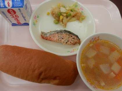 ・ロールパン ・牛乳 ・鮭のハーブ焼き