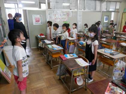 2年生の教室では、授業開始のあいさつの声が響いていました。
