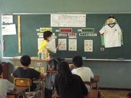 栄養教諭の横田先生をお招きし、食育の授業を行いました。今日の給食に使われている食材を3大栄養素に分けたり、クイズ形式で胃や小腸について学習したりしました。