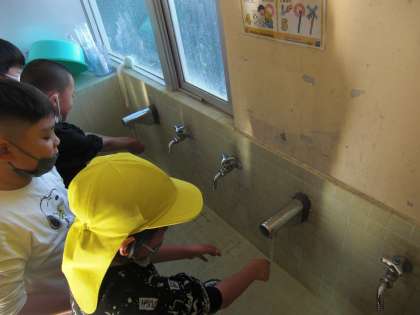 子供たちが普段使っている水道の蛇口の一部が自動で水が出るタイプになりました。感染症対策として市が今年度行った事業です。20分休みに運動場から帰ってきた子供たちは、興味津々で、ちょっとびっくりしながら手を洗っていました。