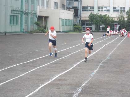 3年生以上が、体力テストを行いました。今日実施したのは、50m走、立ち幅跳び、ボール投げ、上体起こしです。