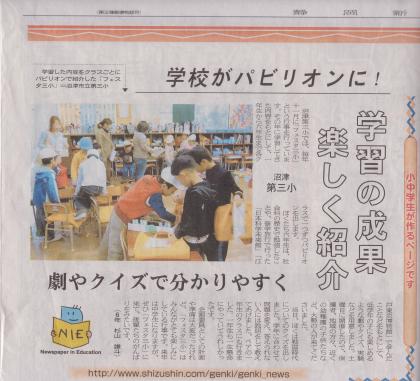 12月17日(月)静岡新聞朝刊に第三小学校の児童の活動の様子が掲載されました。