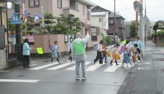 今朝は、地域の民生委員の方々が三小の地域のいろいろな場所で、旗振り活動をしていただきました。