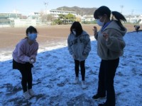 昨日の大雪がまだ運動場に残っていました。朝は一面が白かったのですが、お昼休みにな...