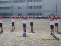 応援団の練習も進んでいます。昼休みには自主練習も行なわれています。その周りで低学...