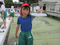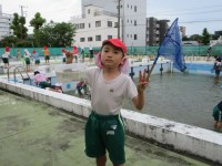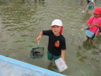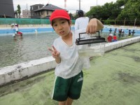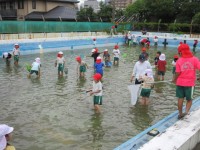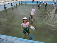 2年生生活科の学習です。プールでヤゴやアメンボなど、水の中の生き物を探しました。全員でたくさんの生き物を見つけることができました。