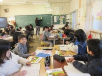 紙くるくる丸めて、つなぎ合わせて、思い思いに作品作りに挑戦です。