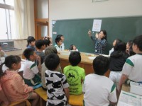 2組は、「はがきの書き方」の学習です。郵便番号、宛先、名前などの書き方や、切手の役割などについて学習していました。最近ではメールやSNSなどで連絡を取り合っていますが、親戚やお友達などに暑中見舞いや残暑見舞いなどのお手紙が出せるといいですね。