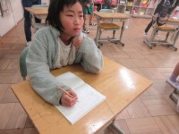 7の1組は、図工の鑑賞です。自分の作品を紹介した後、友達から感想を言ってもらいます。作品のよさをみんなに求めてもらえてよかったね。それぞれが工夫した点を堂々と発表しました。
