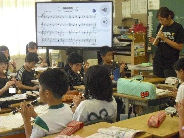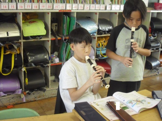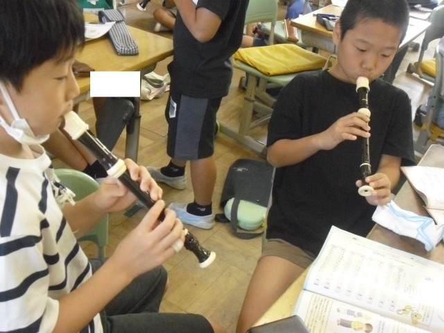 4年生は、音楽「陽気な船長」リコーダーの授業です。