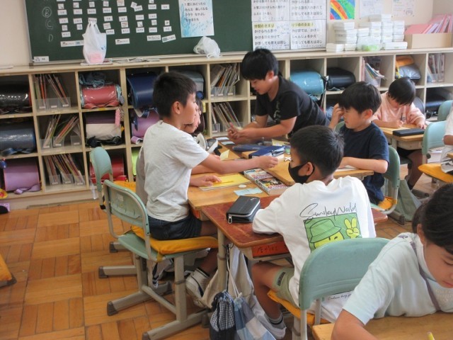 2組は、国語「学校の掃除の仕方」について話し合う学習です。グループでいろいろな意見を出しながら話し合っています。