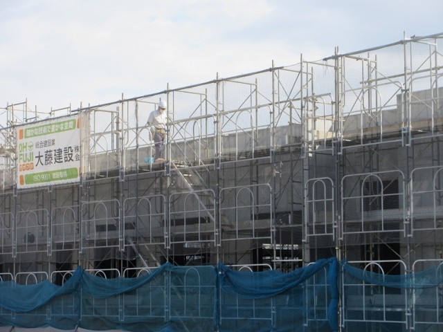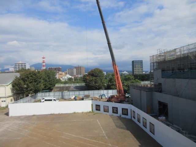 昨日よりも大幅に型枠が外され、コンクリート部分が確認できるようになってきました。目視では確認できませんが、計画表によると、1階発泡ウレタン工事、サッシモルタル詰めなどの細部の工程も始まっています。子供たちも新校舎ができるのを楽しみにしています。