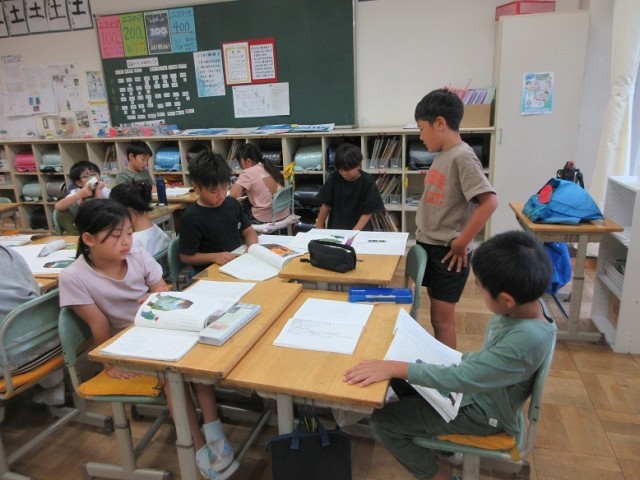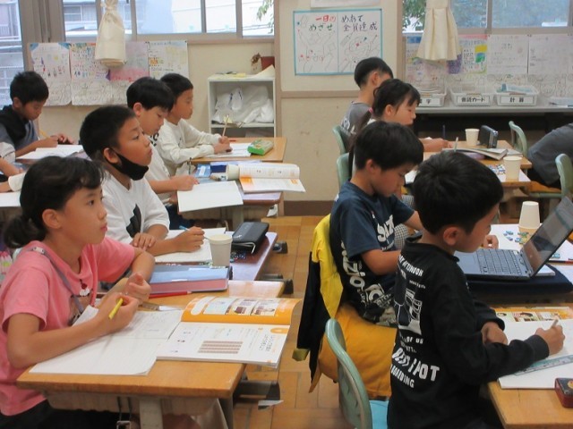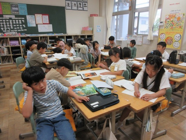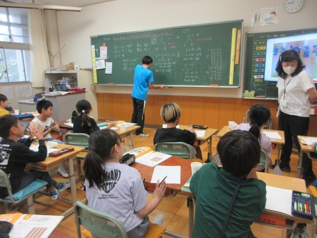3年1組は、国語「サーカスのライオン」の学習です。喜んでいるじんざの気持ち、やさしいじんざの様子が分かるところなどを読み取っていきました。心の様子が分かる文章を上手に探していきました。