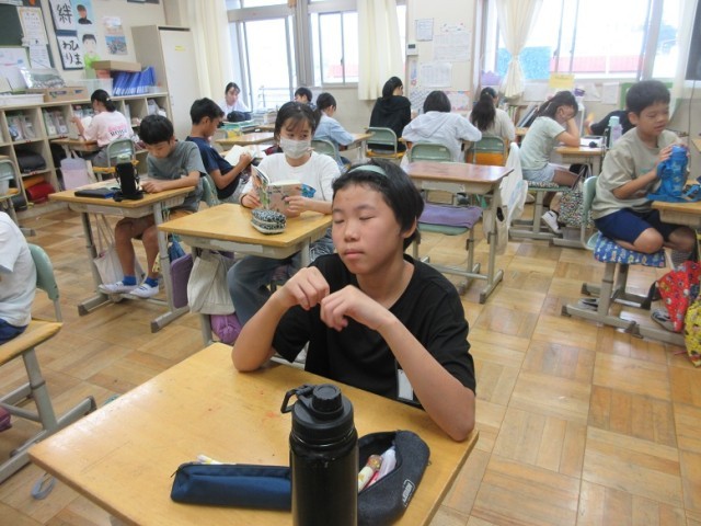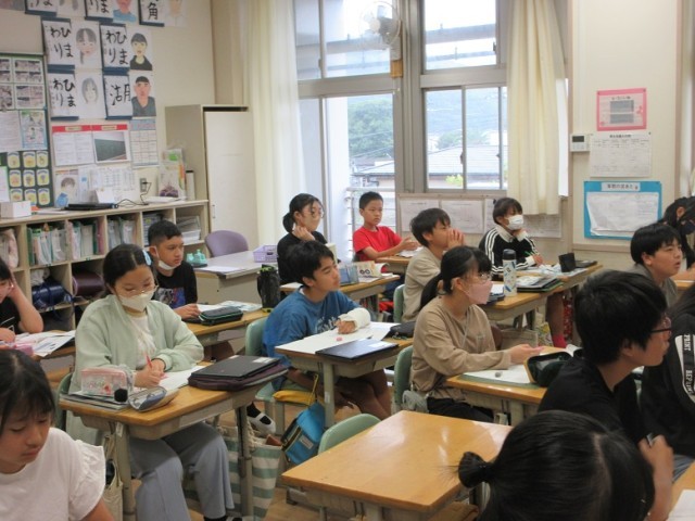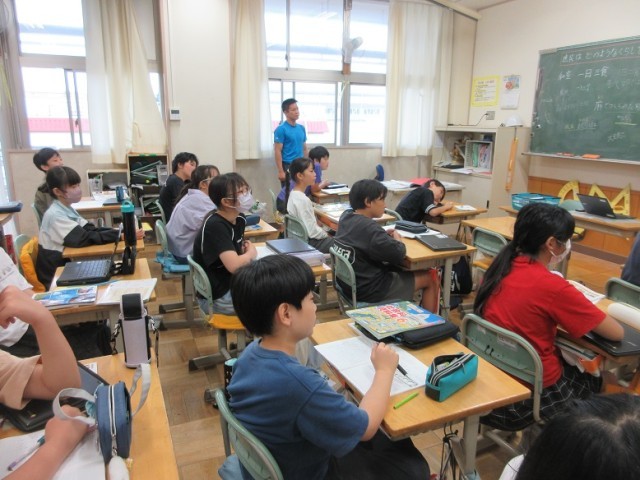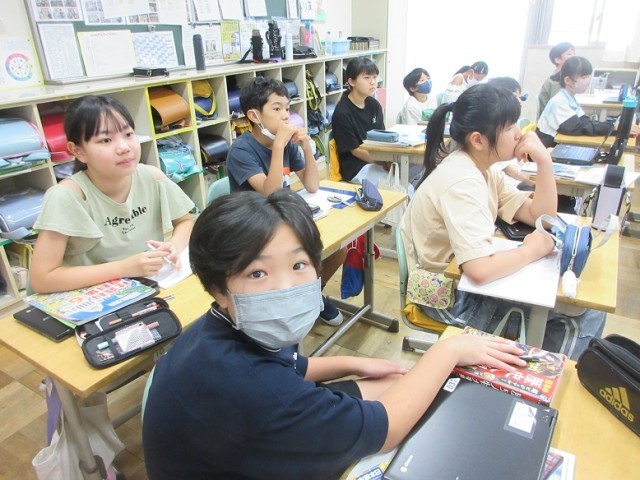 3組は、理科「水溶液」の学習です。次回、先生が5種類の水溶液を用意しますと予告。その中には安全な物もあるし、少し危険な物もありますと。さあ、どうやって見分けるのかというのが課題です。楽しみですね。