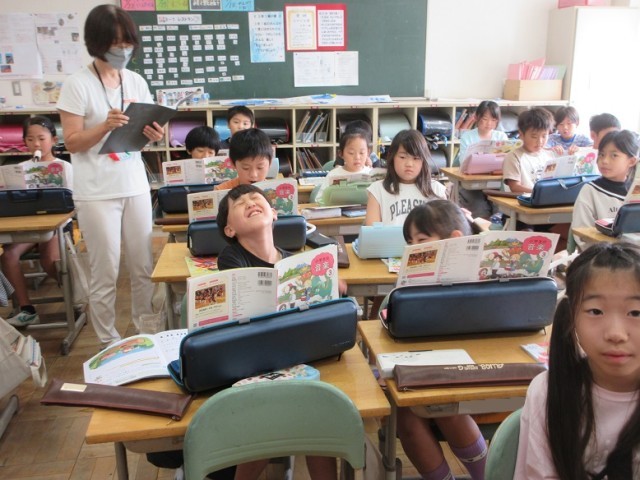 3年1組は、音楽「ゆかいな木きん」の「覚えてるかなテスト」です。1人ずつ先生が鍵盤ハーモニカの演奏をチェックしていきます。最後まで、同じ速さで、指を正しく、のめあてのとおり演奏できたかな?