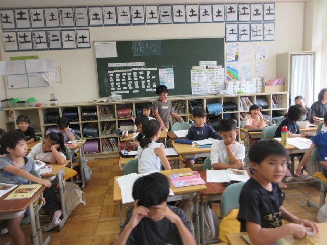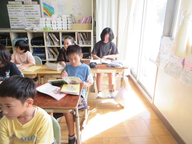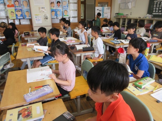 2組は、国語「サーカスのライオン」の学習です。「じんざはどんなライオンだったのだろう?」という課題。みんなで、教科書を手がかりに考えています。