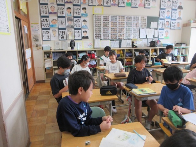 2組は、国語「模型のまち」の学習です。ビー玉の色と主人公の気持ちを対比させながら読み取っています。
