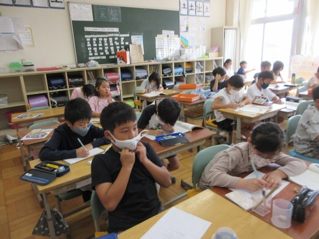 2組は、国語「サーカスのライオン」の学習です。今日はじんざの仕事とそのときの気持ちについて、みんなで考えていました。みんなは、本物のサーカスって見に行ったことある?