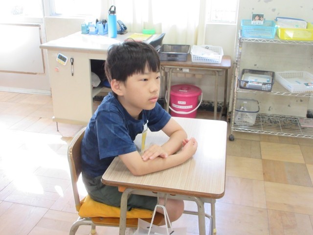 7の1組は、朝の会です。朝の気温を伝えたり、歌を歌ったりしました。歌は「Smile again」です。優しくしっとりと歌っていました。「どんなあなたも みんな好きだから~♪」