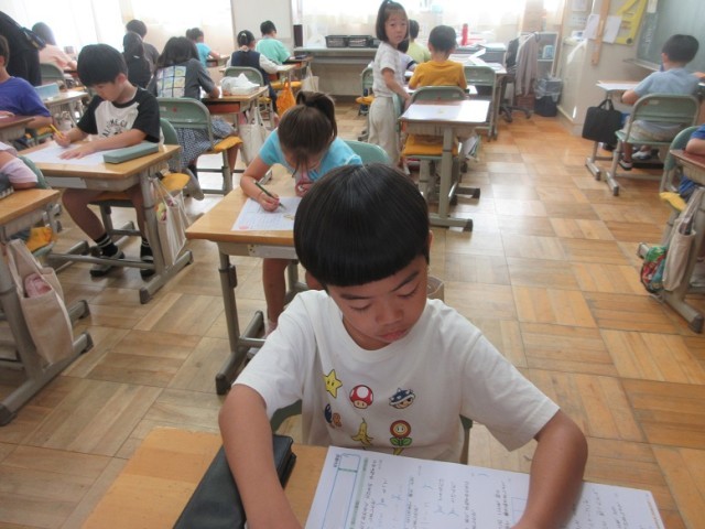 2組は、明日の予定を書いています。予定帳をしっかり書いて、明日の見通しを立てています。明日は、参観日ですね!がんばれ~!