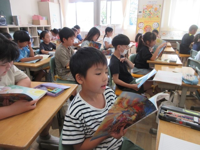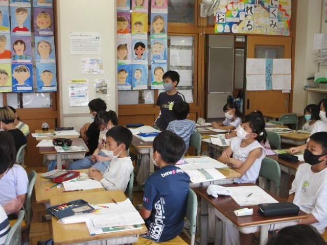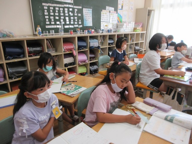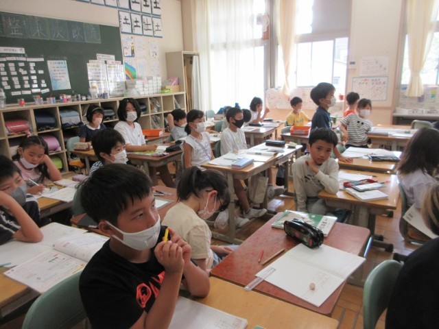3年1組は、国語「ぼくが ここに」の学習です。どんな詩なのかをみんなで考えています。また、間を開けて読む練習もしています。