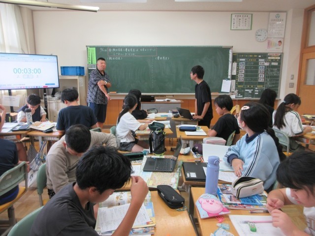 1時間目に6年3組の社会科公開授業がありました。戦国時代の内容に入ったところですが、今日は「織田信長と豊臣秀吉、この二人のうち日本のリーダーにふさわしいのはどっち」という学習課題に取り組みました。