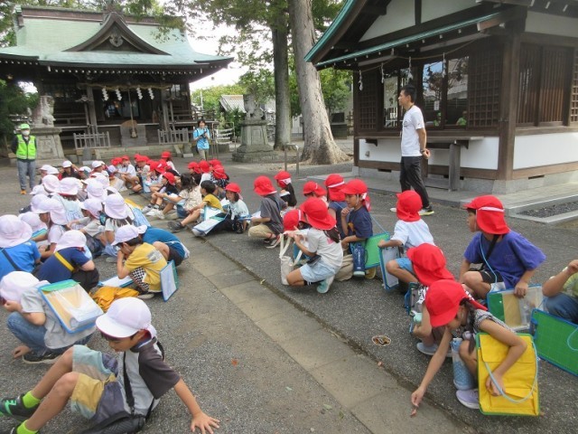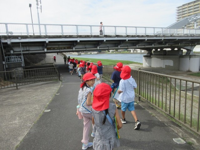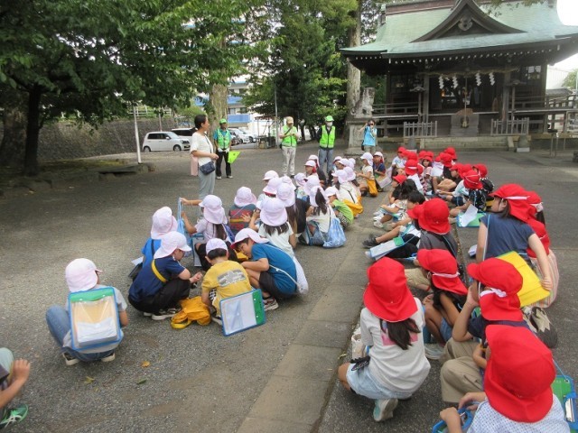 狩野川の堤防沿いを歩き、あゆみ橋をこえて八幡神社に立ち寄りました。このあと、目的地の第四地区センターに向かいました。