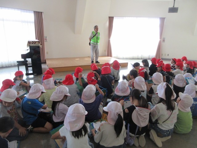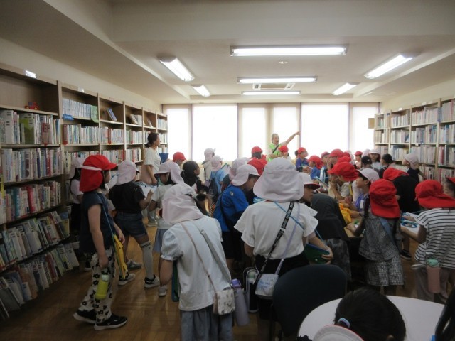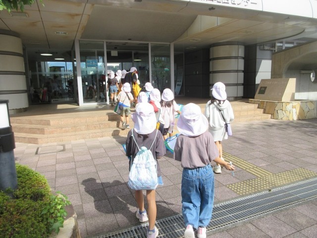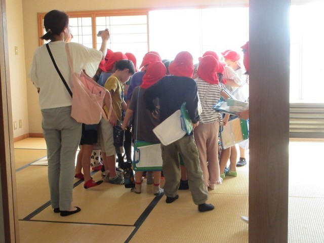 目的地の地区センターに到着です。多目的ホールで地区センターの歴史や目的などのお話を聞きました。質問をする子もしっかり質問できましたね。その後、センター内の和室や調理室、図書室の見学もしました。おまけに会議室で英語の勉強をしている方々の様子も見学させてもらいました。