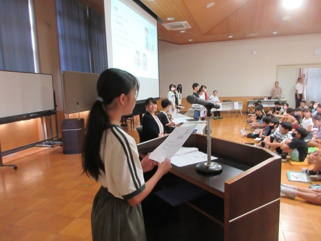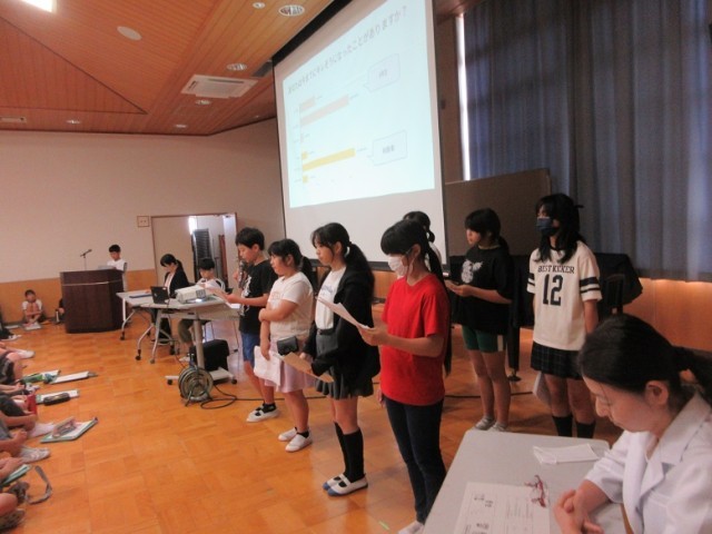 次に、本校の臨床心理士・公認心理師のスクールカウンセラーが「イライラと上手につきあおう」というテーマでお話をしました。イライラするときの対処法としていくつか具体的な方法を教えてもらいましたね。ぜひ、実践してください。